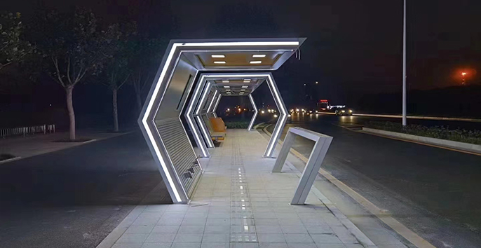 不锈钢板或镀锌板是候车亭最主要的材料,也有采用铝型材的,但比较少见。其他主要材料还有PC耐力板、钢化玻璃,用在灯箱两面,就是广告画面外面透明的那层板;铝塑板,用在顶棚的下面,就是抬头看到的那部分;镀锌板,一般用在顶棚上面和灯箱的主框。